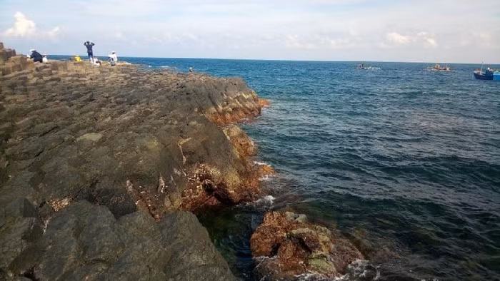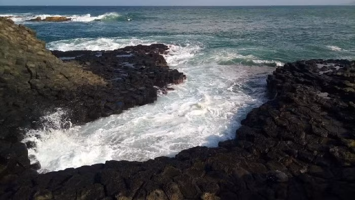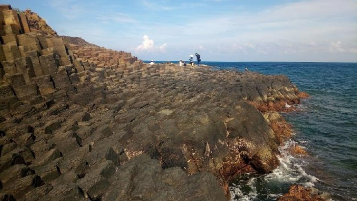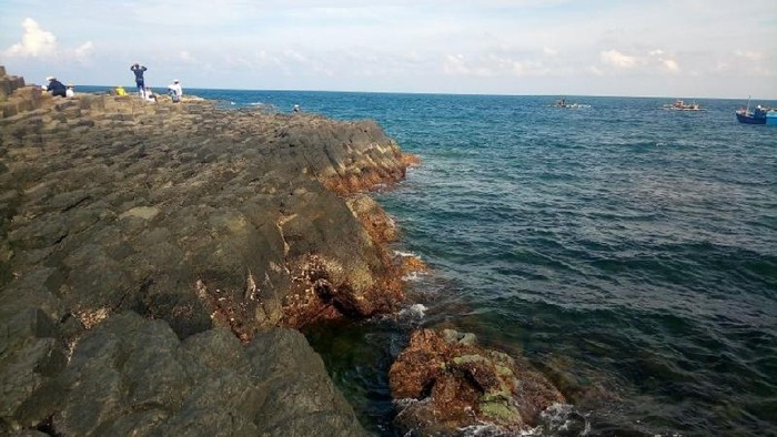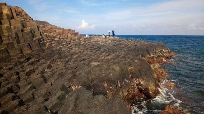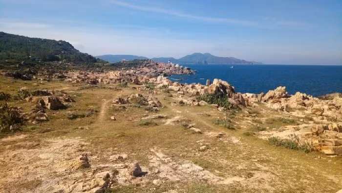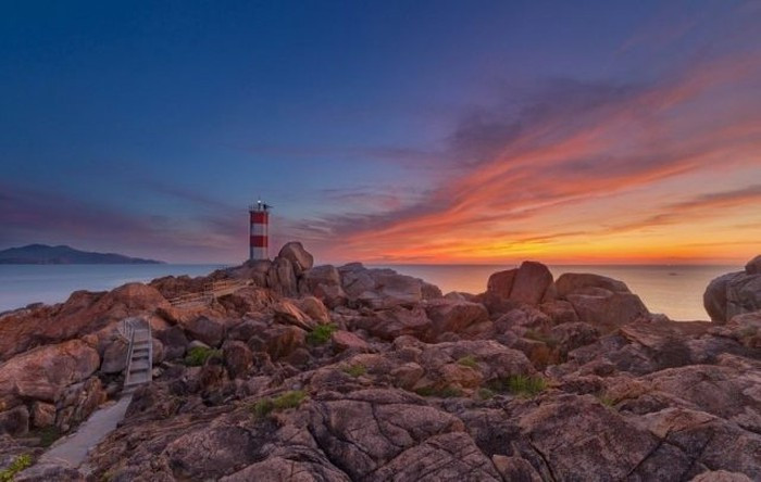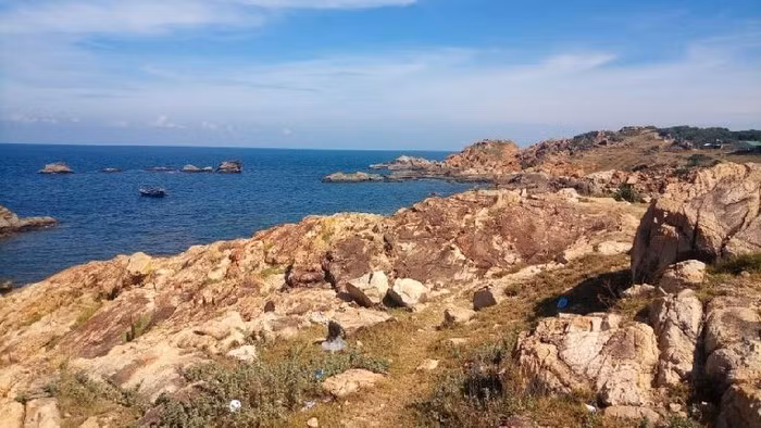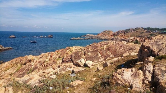 Sự tương phản của màu sắc giữa đất đá và biển cả tạo nên không gian đẹp tuyệt vời.