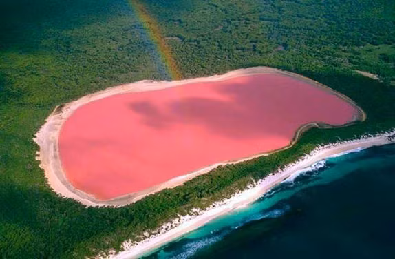 5. Hồ hồng Hiller (Úc) có màu sữa dâu rất đặc biệt. Hồ được nhà thám hiểm hải quân Hoàng gia phát hiện vào năm 1802. Hồ nằm gần bờ biển miền trung quần đảo Recherche, phía nam Tây Úc. Chưa ai chắc chắn về màu sắc của hồ, các nhà khoa học cho biết rất có thể do tảo tạo ra.