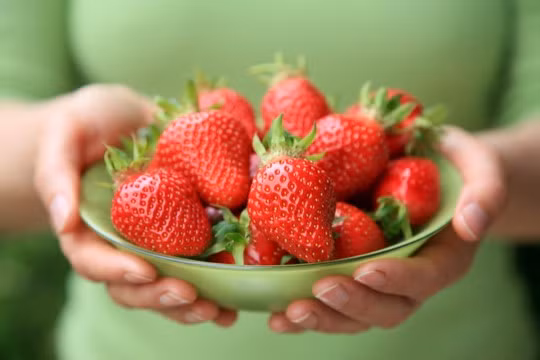 Dâu tây chứa lượng Vitamin C tương đương một quả cam. Dâu tây còn là quả giàu chất anthocyanins – giúp đốt cháy chất béo trong cơ thể.
