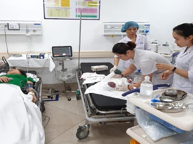 ThS.BS Nguyễn Đức Long, Trưởng khoa Cấp cứu BV Đa khoa tỉnh Phú Thọ, cho biết khi đến BV hai mẹ con sản phụ H. đều trong tình trạng hết sức nguy hiểm. Cháu bé tím tái, suy hô hấp, da và niêm mạc toàn thân, đường thở nhiều dịch bẩn, khóc kém, mạch khó bắt, SOP2 không đo được.