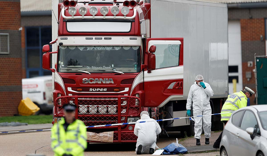 Cảnh sát Anh hôm 23/10 tìm thấy 39 thi thể trong thùng container tại khu công nghiệp Grays, hạt Essex, đông bắc thủ đô London. Các nạn nhân sau đó được xác định đều là công dân Việt Nam nhập cư trái phép vào Anh bằng container trên phà xuất phát từ Bỉ.