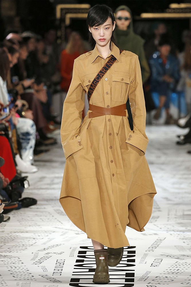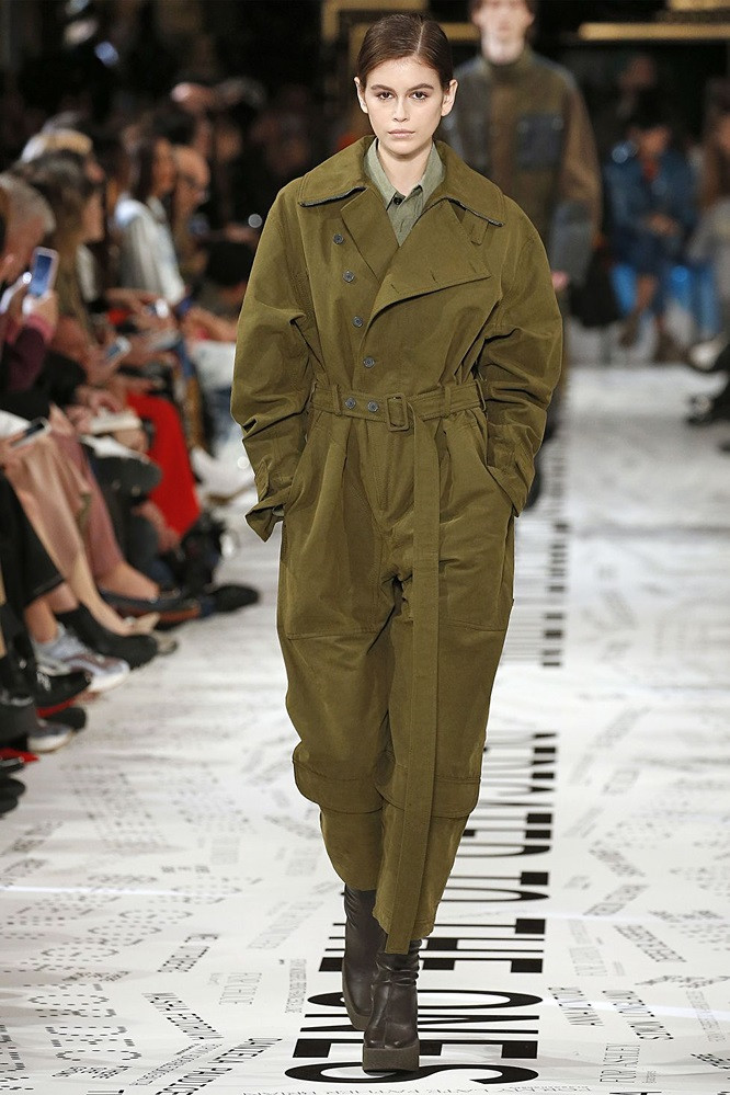 Áo khoác ngoài màu xanh rêu có nút bằng đồng kết hợp với giày to, hầm hố cũng là một xu hướng thường thấy trong các bộ sưu tập năm nay.