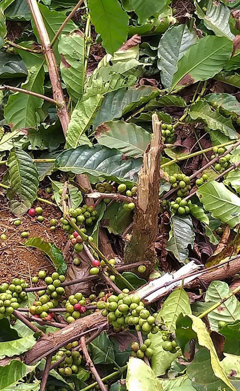 Toàn bộ 85 cây cà phê bị chặt đang cho trái bói. ẢNH: TRÙNG DƯƠNG