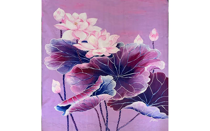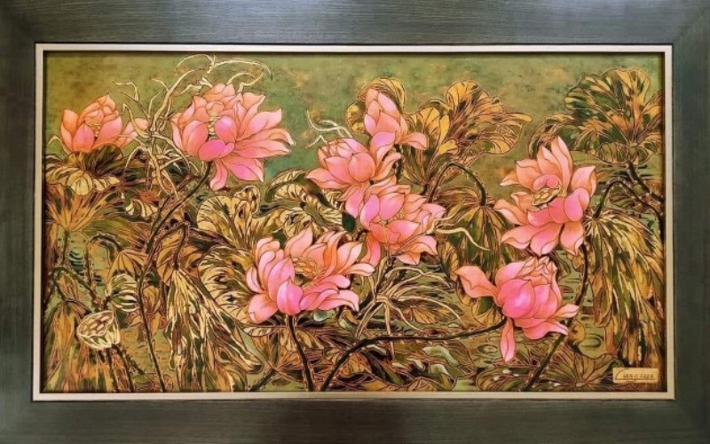 | Một số bức tranh tiêu biểu trong bộ 108 tranh hoa Sen. (Ảnh: Butta.vn) |