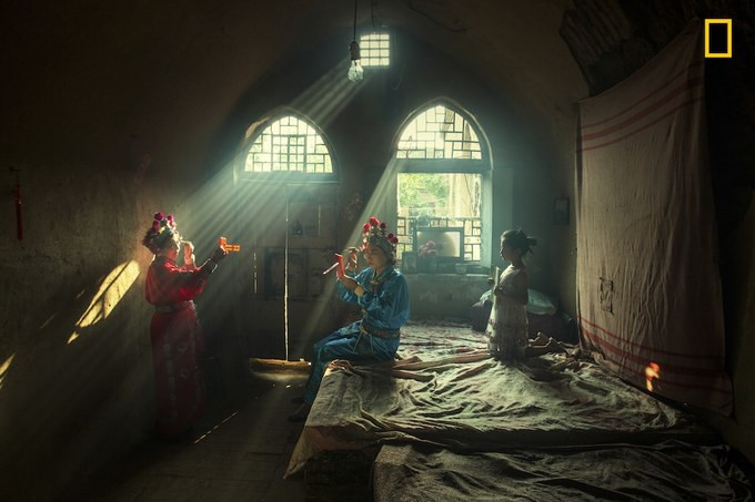 Tác phẩm “Đến giờ diễn” của tác giả Huaifeng Li đoạt giải nhất hạng mục Con người. Bức ảnh chụp các nghệ sĩ đang trang điểm, chuẩn bị cho buổi diễn tối tại quận Lịch Thành, Sơn Đông, Trung Quốc.