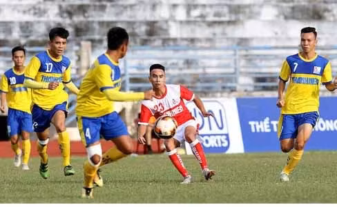 Cầu thủ Đồng Tháp (áo vàng) thi đấu tại Giải U21 quốc gia 2019. (Ảnh: VFF)
