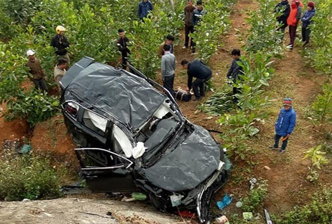 | Ô tô con BKS 11A - 043.92 lao xuống vực khi lưu thông trên tuyến cao tốc Thái Nguyên - Chợ Mới đoạn qua xã Quảng Chu, huyện Chợ Mới (Bắc Kạn) chiều 1/1/2019, khiến 4 người bị thương Ảnh: HT |