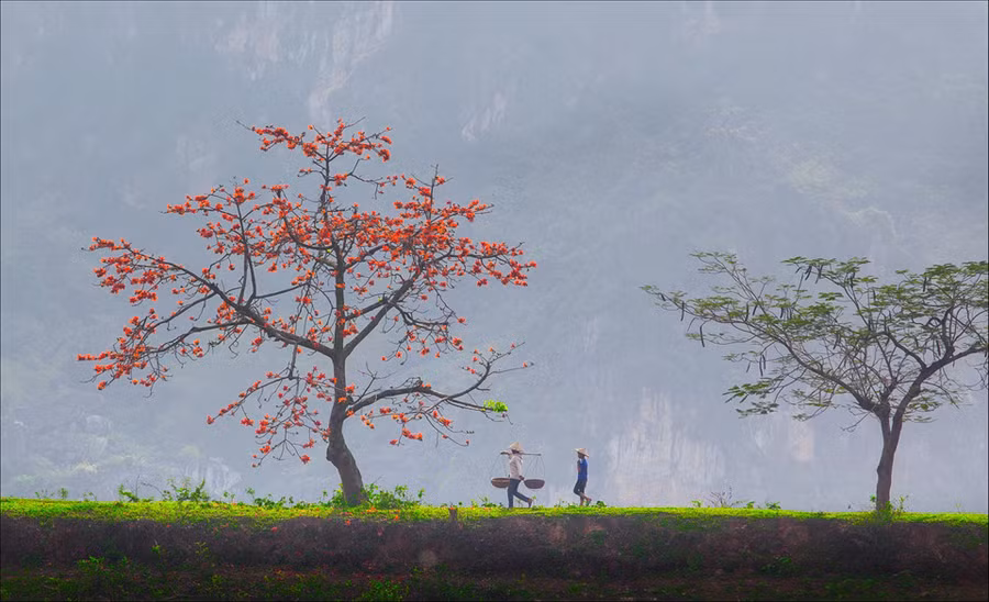 Thời điểm tháng 3 gắn liền với sắc đỏ rực của hoa gạo. Cây gạo thường được trồng ở đầu làng, gợi nhớ đến không khí bình dị và trong trẻo ở vùng nông thôn Việt Nam. Hoa gạo nở còn là dấu hiệu nhận biết thời điểm giao mùa từ xuân sang hè, rất có ích trong sản xuất nông nghiệp.