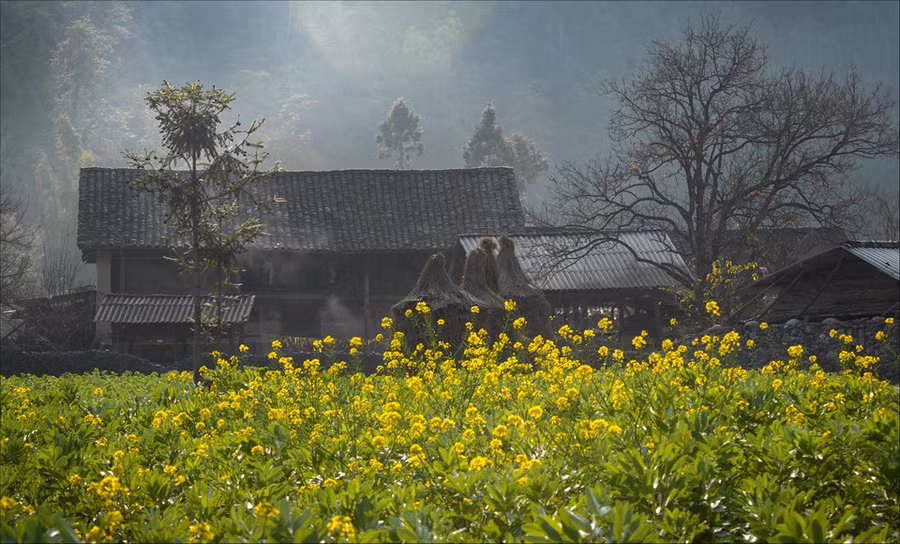 Cuối tháng 11 - tháng 12, một biển hoa vàng khác cũng khoe sắc rực rỡ trên vùng cao nguyên đá Đồng Văn (Hà Giang). Đó là những vườn cải vàng hoang sơ, mộc mạc mà ấm áp giữa miền sơn cước lạnh lẽo mùa đông.