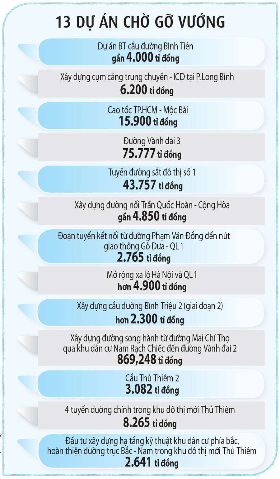 | Loạt dự án trọng điểm của TP.HCM đang chờ Chính phủ gỡ vướng. Ảnh: Ngọc Dương |