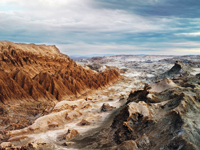 15. Valle de la Luna (Thung lũng Mặt trăng), Chile. Đã bao giờ bạn mơ ước khám phá mặt trăng? Một chuyến đi đến Valle de la Luna ở sa mạc Atacama của Chile là một chuyến bay ngắn hơn nhiều. Hiện tượng xói mòn đã để lại những ngọn núi cao, những dòng sông khô và một cảnh quan bắt mắt tương tự như mặt trăng.
