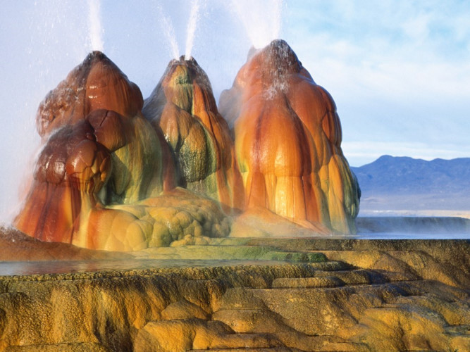 2. Mạch nước phun Fly Geyser, sa mạc đá đen, Nevada, Mỹ. Fly Geyser đã vô tình được tạo ra khi nước bắt đầu phun trào thông qua một giếng nhân tạo vào năm 1964. Khi đến tham quan, khám phá mạch nước phun Fly Geyser, du khách như lạc trong một bộ phim khoa học viễn tưởng.