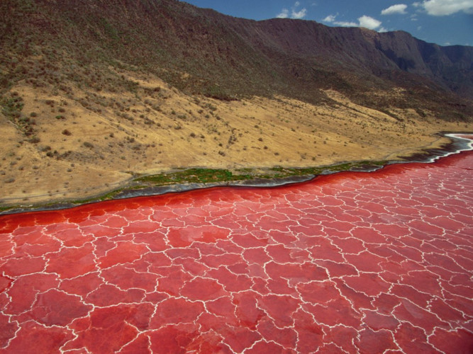 8. Hồ Natron, Monduli, Tanzania. Hồ nước mặn này rất đẹp, nhưng nhiệt độ 120 độ và độ pH thấp khiến nó trở thành một điểm nghỉ mát ít lý tưởng.