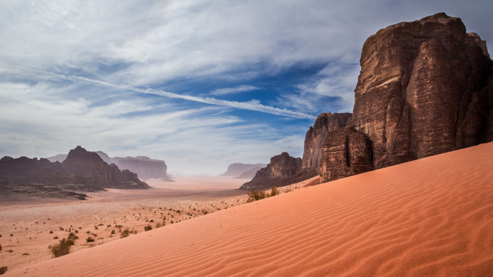 1.Wadi Rum, Jordan. Di sản thế giới được UNESCO công nhận ở miền Nam Jordan có cảnh quan thiên nhiên phong phú gồm các vách đá, hang động, hẻm núi hẹp, vòm tự nhiên và cát đỏ giống sao Hỏa.