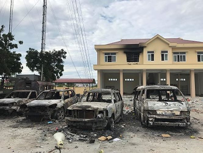 Khi lực lượng CSCĐ lui vào trụ sở của Đội Cảnh sát PCCC, 15 đối tượng quá khích tiếp tục tấn công và đốt phá hàng loạt xe chuyên dụng chữa cháy, xe CSCĐ và đập phá tài sản, gây thương tích cho các chiến sĩ.