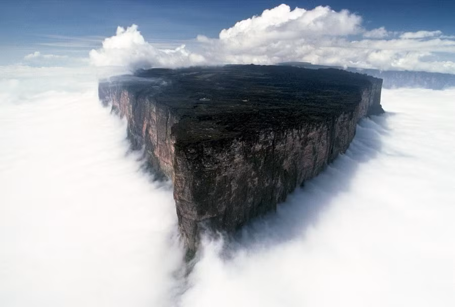 Nhìn lên núi Roraima, bạn sẽ có cảm giác như lạc vào thời tiền sử. Dãy núi này cao 2.800 m, thuộc ba nước Venezuela, Brazil và Guyana.