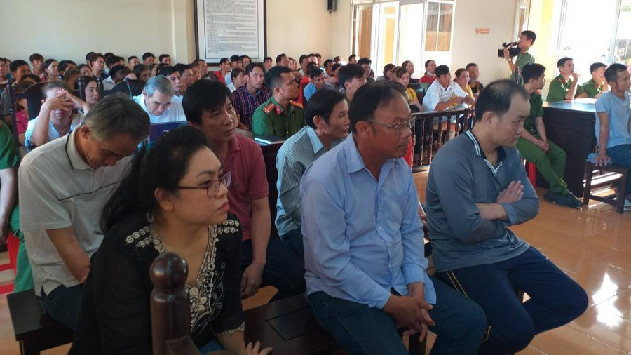 Các bị cáo tại phiên tòa ngày 19/6. Ảnh: Tăng Định