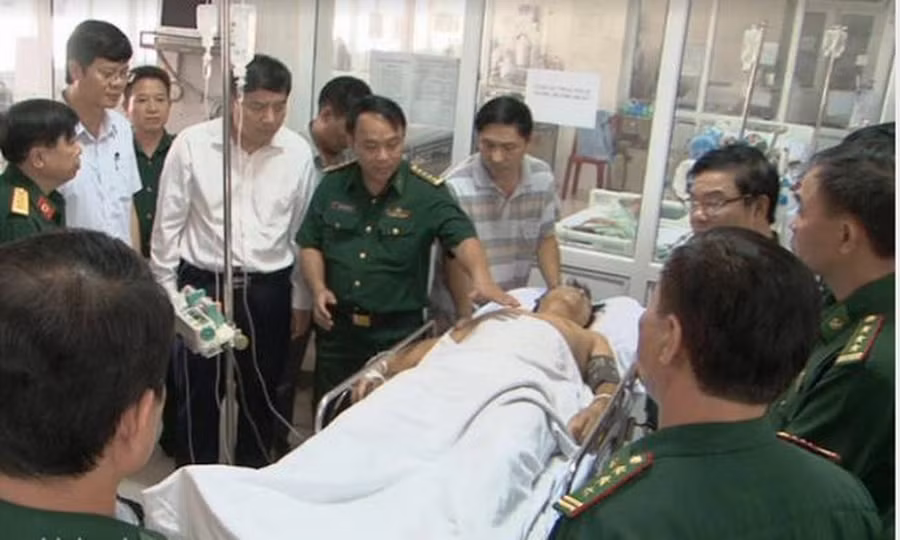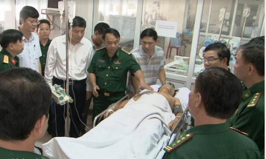 Tại giường bệnh, lãnh đạo tỉnh Nghệ An đã động viên, chia sẻ với các chiến sĩ, gia đình nạn nhân cũng như ban chuyên án của lực lượng biên phòng.