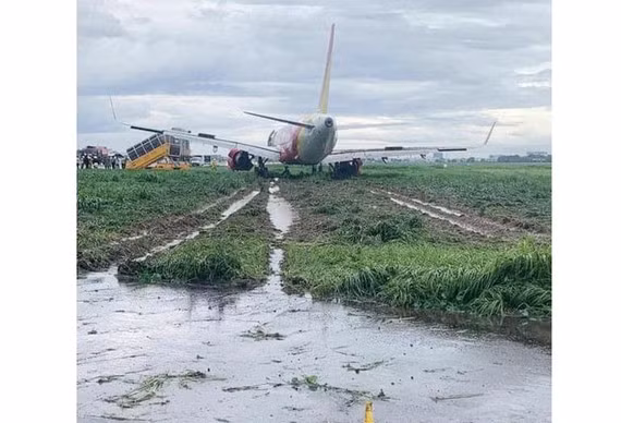 Trước đó, lúc 11 giờ 23 trưa nay, chuyến bay VJ322 khởi hành từ Phú Quốc, trong lúc hạ cánh tại Sân bay Tân Sơn Nhất đã trượt ra ngoài mép đường cất hạ cánh 25L/07R.