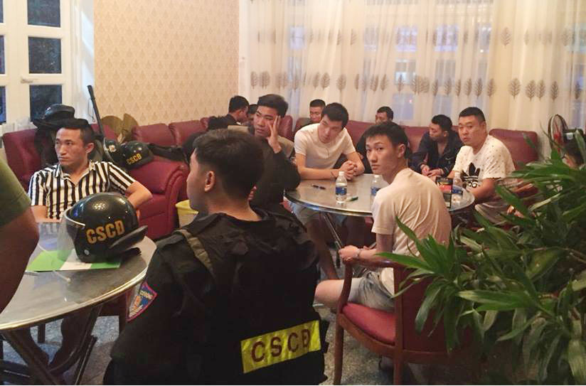 Tại đây, lực lượng chức năng phát hiện 22 người Trung Quốc (22 nam, 2 nữ) đang sử dụng các thiết bị điện tử truy cập vào các trang web, dùng để tổ chức cho các cá nhân người Trung Quốc đánh bạc trực tuyến và nhiều dữ liệu liên quan tới tài khoản ngân hàng của các nhân ở các nước Mỹ, Anh.