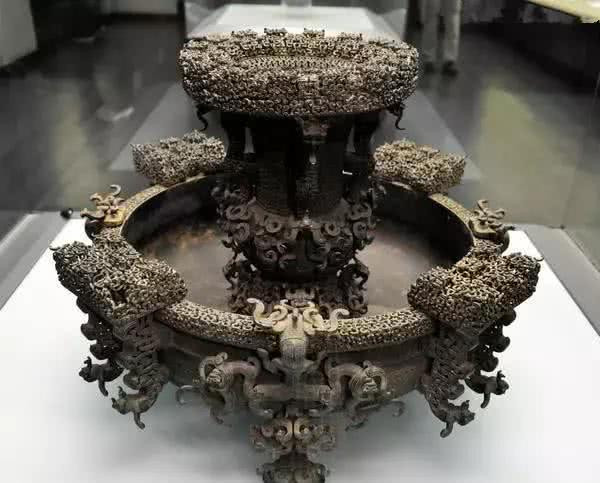 Bảo vật thứ 3, vô cùng tinh xảo, đó là đôn của Tăng Hậu Ất – Quốc quân của Tăng quốc thời Chiến quốc. Như chúng ta đã biết, các bảo vật  khai quật từ lăng mộ của Tăng Hậu Ất là những báu vật quốc gia rất quý giá. Trung Quốc đã từng tìm ra kho báu quý hiếm được khai quật từ ngôi mộ của vị Quốc quân này, đó là những chiếc chuông nghiêng. Trên thực tế, ngoài những chiếc chuông, ngôi mộ còn khai quật được những bát vật “nghịch thiên”, ví dụ như chiếc đôn đồng này. So với chuông, mặc dù kích thước của nó nhỏ, nhưng giá trị của nó không kém gì chuông. Đôn là một cấu trúc phức tạp gồm hai phần: phần trên được gọi là đôn bằng đồng, đúc 28 con rồng, cao 30,1 cm, đường kính trong 25 cm, đường kính đáy 14,2 cm, nặng 9 kg. Phần dưới là một vật thể dạng đĩa , được đúc 56 con rồng, cao 23,5 cm, đường kính lòng trong 58 cm, nặng 19,2 kg . Đây là một bảo vật có kết cấu phức tạp và tinh xảo thời Chiến quốc, đại diện cho đỉnh cao của quá trình đúc đồng cổ xưa của Trung Quốc. Nó cũng là một kho báu độc nhất vô nhị trên thế giới. Do kết cấu cực kỳ phức tạp của nó, không một chuyên gia nào có thể phục chế bản sao.