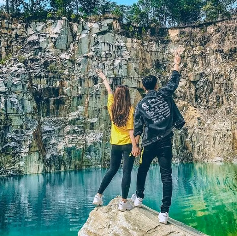 Trước đây, đây là khu vực khai thác đá phục vụ sản xuất xi măng và vật liệu xây dựng. Hồ nước này sau đó bị bỏ hoang, trở thành hồ đá âm, có màu xanh ngắt, độ sâu 30-40 m. Điều đặc biệt, màu xanh của hồ nước còn thay đổi theo màu của mây trời.