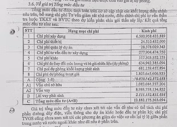 “Giá trị tổng mức đầu tư này chưa xét tới các vấn đề như có thể tách chi phí phần đường dây điện, viễn thông cho dự án khác hoặc đầu tư phân kỳ… Công tác giải phóng mặt bằng đã được thực hiện trong dự án riêng…”, báo cáo thẩm định có nêu.