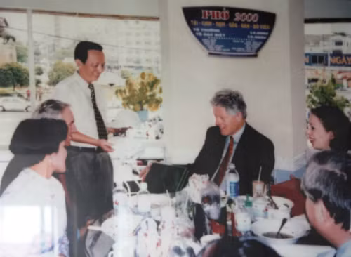 Chuyến thăm hữu nghị mang tính lịch sử diễn ra vào năm 2000, khi vợ chồng cựu Tổng thống Mỹ Bill Clinton tới Việt Nam lần đầu tiên, sau 25 năm chiến tranh kết thúc. Gia đình Clinton đã đến hàng phở Cồ gần Văn Miếu Quốc Tử Giám. Sau khi vào TP HCM, ông Bill Clinton cũng ghé một quán phở gần chợ Bến Thành để thưởng thức. Theo lời kể của nhà hàng, ông Clinton rất hòa nhã, vui vẻ và còn chụp ảnh kỷ niệm với nhân viên tại đây. Ảnh: TripAdvisor.
