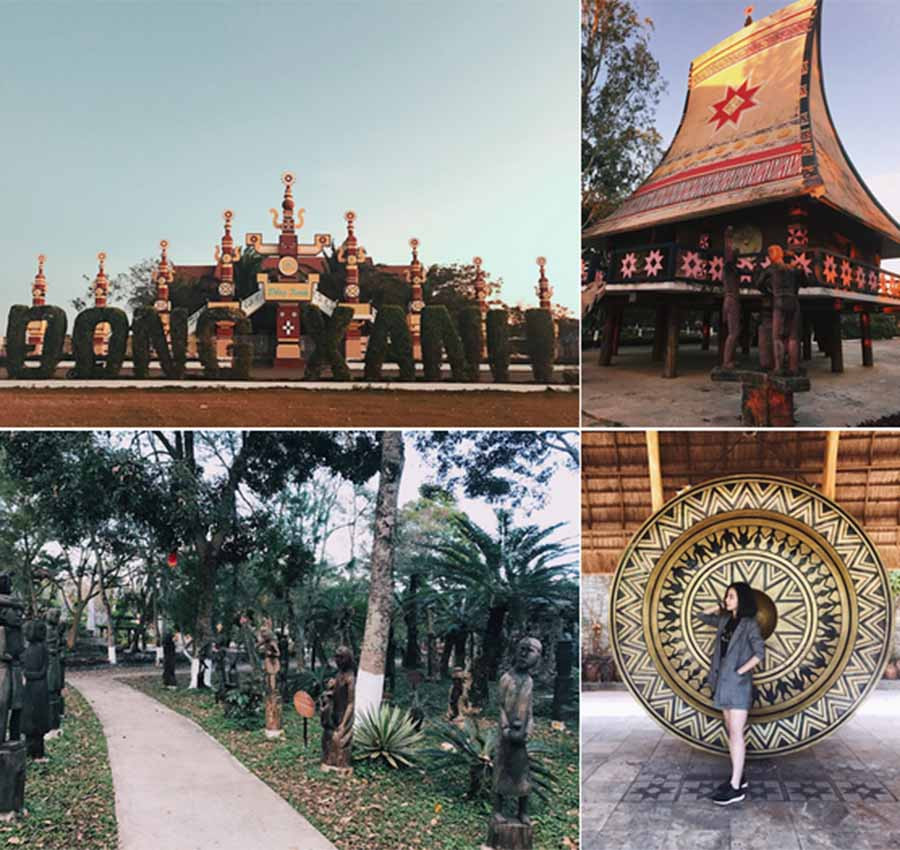Công viên Đồng Xanh: Đến Gia Lai, bạn nên ghé thăm công viên Đồng Xanh, nơi được mênh danh là bức tranh thu nhỏ của núi rừng Tây Nguyên, để có cái nhìn bao quát hơn về cuộc sống của người dân nơi đây. Bạn sẽ được chiêm ngưỡng các nét văn hóa đặc sắc, độc đáo, check-in với những mô hình kiến trúc nhà mồ, nhà rông, nhà dài... tuyệt đẹp.