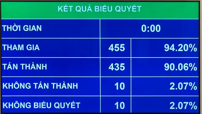 Trước khi biểu quyết thông qua toàn bộ dự thảo nghị quyết, Quốc hội cũng biểu quyết thông qua Điều 1 của dự thảo (cũng với 435/455 đại biểu tán thành, chỉ khác ở chỗ có 12 đại biểu không tán thành và 8 đại biểu không biểu quyết).