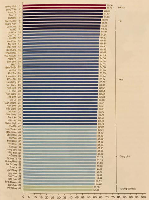 Chỉ số năng lực cạnh tranh cấp tỉnh 2018 của 63 tỉnh, thành. Ảnh: VCCI.