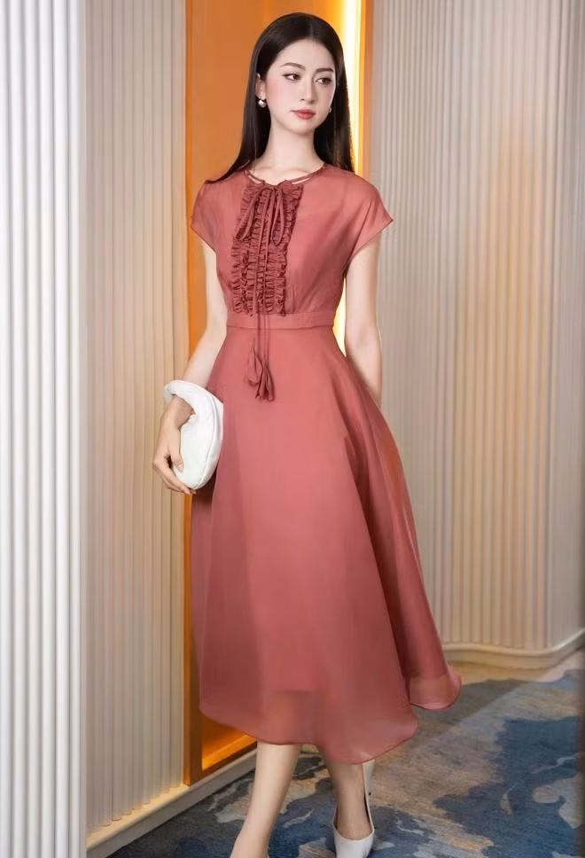 Đầm xòe tơ gân màu hồng pastel có điểm nhấn là chi tiết nhún vai cổ xéo, xếp nếp tôn eo thon giúp nàng thu hút trọn sự chú ý. Với thiết kế này, tính ứng dụng hoàn toàn do nàng quyết định - mặc đi làm, đi chơi hay đi tiệc đều phù hợp và sang xịn miễn bàn. ẢNH: MAYBIChất liệu vải tơ trên phom dáng váy sơ mi giúp đa dạng hóa hình ảnh quý cô trong tổng thể chỉn chu tối giản. Màu xanh mint, xanh bơ hay xanh ô liu đang là những sắc xanh xu hướng - sắc độ nhạt và tươi sáng của chúng khiến người mặc tươi tắn và rạng rỡ hơn dưới nắng hè. ẢNH: SIXDO