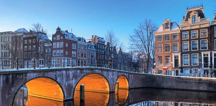Amsterdam, Hà Lan. Thành phố này có khung cảnh tuyệt đẹp, thậm chí còn đẹp hơn nữa bởi sự có mặt của lớp tuyết phủ trên những cây cầu có đèn, những cối xay gió, thưởng thức bia địa phương, nhiều viện bảo tàng và hàng loạt các chương trình giảm giá lớn trong mùa đông.
