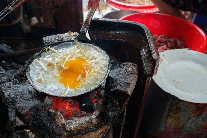 Bánh gồm nhiều loại nhân, nếu ăn bánh đầy đủ gồm trứng - tôm - bò thì khoảng 15.000 đồng/ cái. Cách ăn ở đây cũng là lạ vì phần lớn khách chan nước mắm vào trong dĩa ăn cả bánh với rau chứ không cuốn như bánh xèo miền Tây.