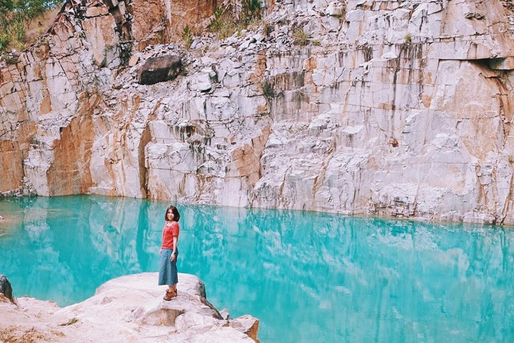 An Giang. Hồ nước nằm trên đỉnh núi Tà Pạ (huyện Tri Tôn, An Giang) nhờ màu xanh ngọc in bóng các mỏm đá như cảnh trong phim cổ trang, nên được nhiều bạn trẻ ví là "tuyệt tình cốc" phiên bản miền Tây. Hồ nước là dấu vết của mỏ khai thác đá.