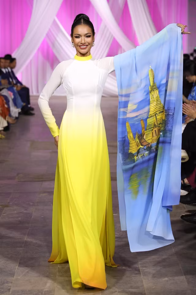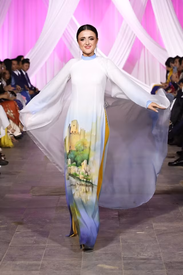 “Với những đất nước nổi tiếng chọn danh thắng để vẽ lên áo dài rất dễ dàng. Còn với những quốc gia, vùng lãnh thổ ít người biết thì việc chọn một biểu tượng đặc trưng cho quốc gia đó là điều không dễ dàng.