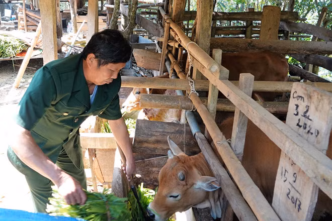 Công việc thường ngày của ông Tem hiện tại là chăm đàn gia súc. Ảnh: M.T.H