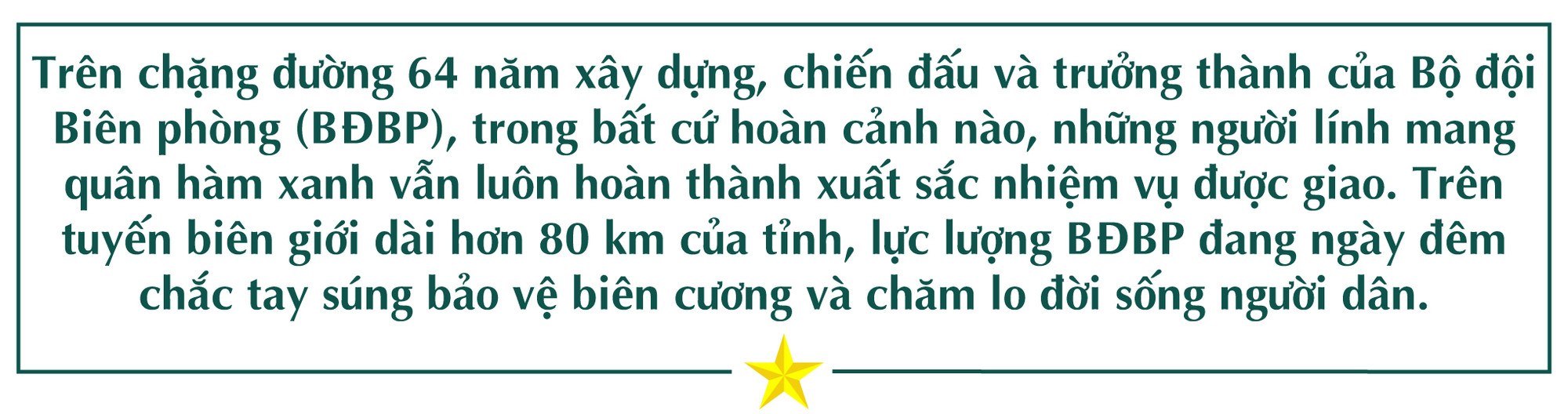 Trong 3 năm qua, dịch bệnh Covid-19 diễn biến phức tạp. Song, với tinh thần đoàn kết khắc phục mọi khó khăn, dưới sự lãnh đạo, chỉ đạo của Tỉnh ủy, UBND tỉnh, lực lượng BĐBP tỉnh đã xuất sắc thực hiện thắng lợi “nhiệm vụ kép”. Đơn vị thiết lập hơn 20 chốt phòng-chống dịch trên biên giới, trở thành những lá chắn thép, vừa quản lý, bảo vệ vững chắc chủ quyền lãnh thổ, an ninh biên giới quốc gia, vừa tham gia phòng-chống dịch Covid-19, quyết tâm không để dịch bệnh lây lan qua biên giới. Trong cuộc chiến chống dịch Covid-19, đã có 3 cán bộ hoãn đám cưới, 4 người không về thăm gia đình khi có người thân qua đời, 2 cán bộ tăng cường vào miền Nam chống dịch và hàng trăm lượt cán bộ, chiến sĩ tình nguyện không nghỉ phép để ở lại làm nhiệm vụ cùng đồng đội.
