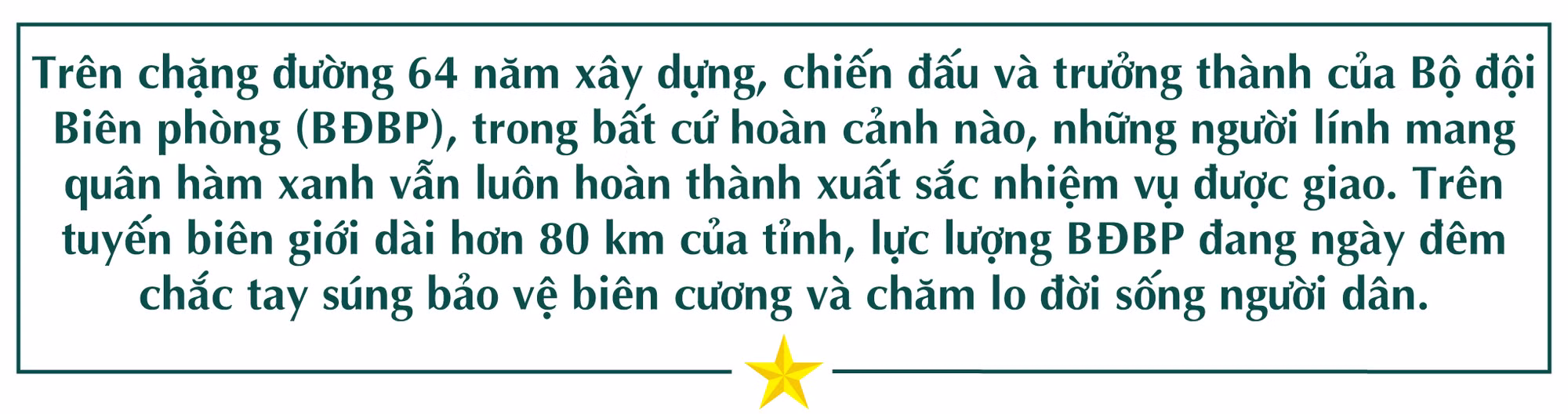 Đường lên biên giới giờ đây không còn khó khăn, gian khổ, ô tô đều đến được các đồn. Cùng với đó, đời sống của cán bộ, chiến sĩ được nâng lên. Tuy nhiên, nhiệm vụ bảo vệ biên giới lúc nào cũng nặng nề, đòi hỏi cán bộ, chiến sĩ Biên phòng luôn phải nêu cao quyết tâm.