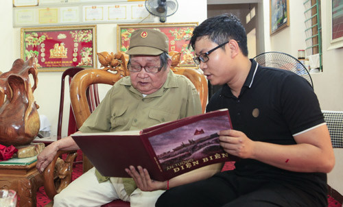 Cựu chiến binh Điện Biên Phủ Phạm Thắng trò chuyện về những ngày tháng rực lửa 65 năm trước. Ảnh: B.V.D