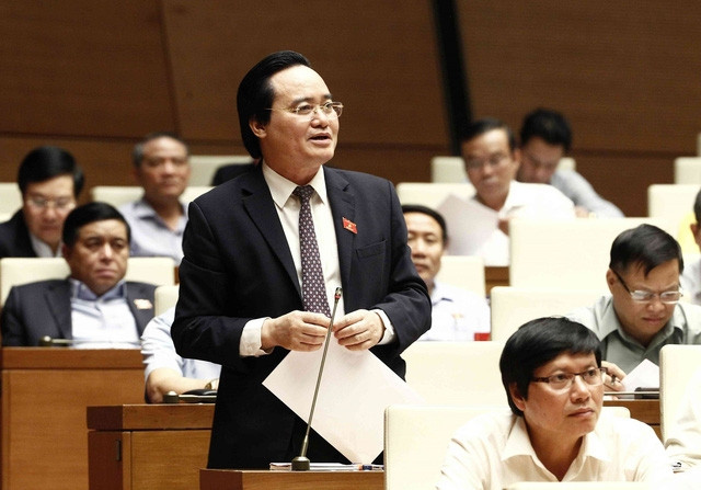 Bộ trưởng Phùng Xuân Nhạ trả lời tại Quốc hội.