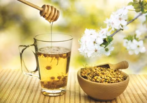 4. Trà hoa cúc hay trà cam thảo: Trà hoa cúc giúp thanh nhiệt và tăng cường hệ miễn dịch cho cơ thể, giảm tỷ lệ phát bệnh và rút ngắn thời gian ảnh hưởng của virus. Ngoài ra, glycyrrhizic acid, một thành phần trong rễ cam thảo, có đặc tính chống viêm và kháng virus sẽ ngăn chặn vết loét lan rộng, chống lại các triệu chứng và giảm bớt khó chịu cho bệnh nhân.