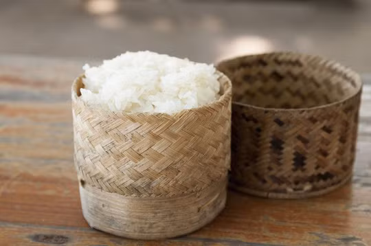 Người Lào có thói quen ăn xôi (khao niao). Thông thường, xôi được nén trong một chiếc giỏ bằng tre gọi là "thip khao". Họ dùng tay để vo xôi thành nắm, sau đó ăn kèm với thịt hoặc rau.
