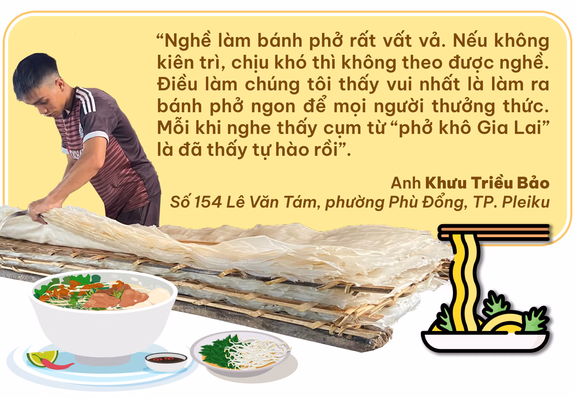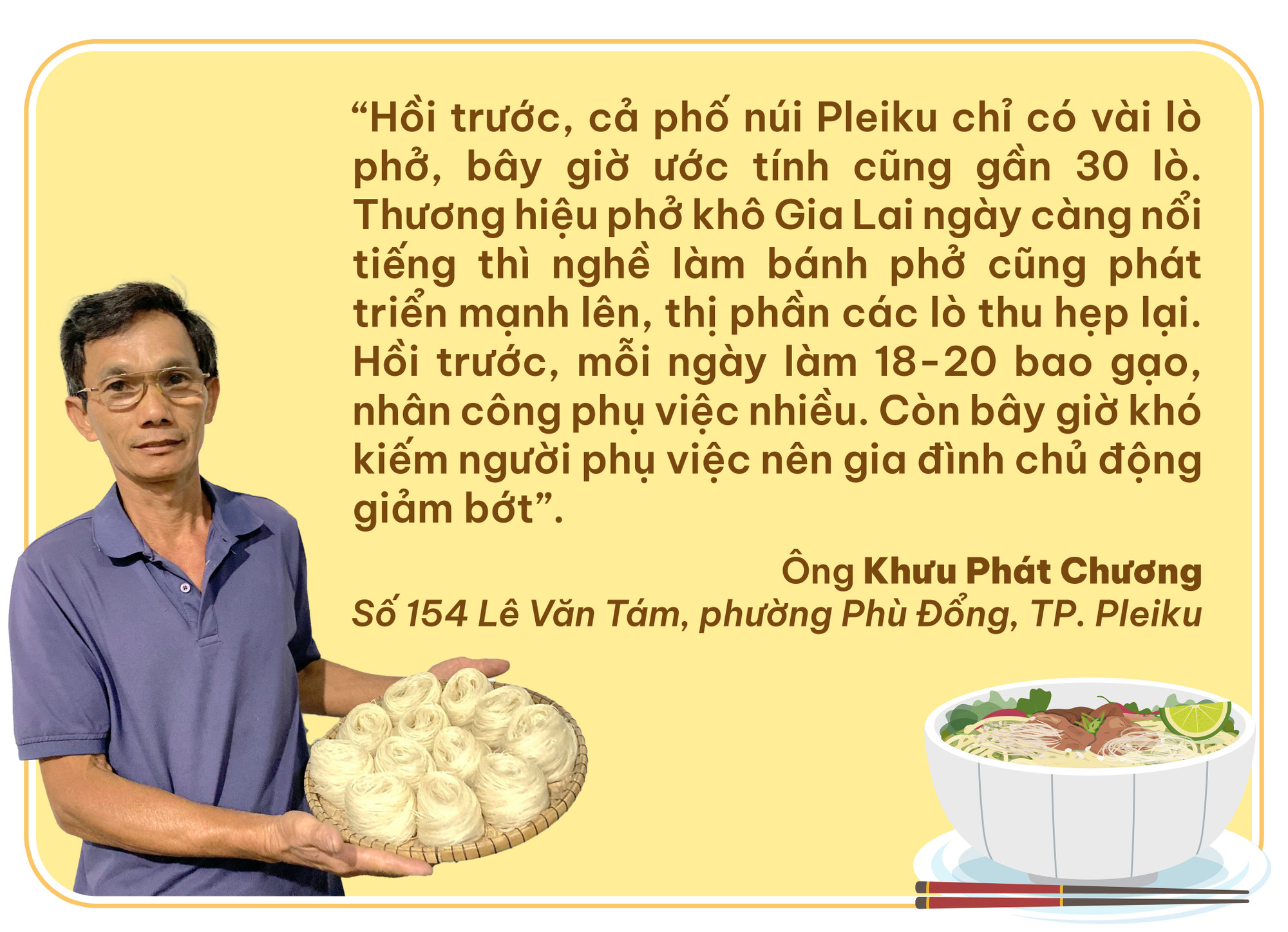 Khi mẹ tôi lấy chồng đã mang theo nghề làm bánh phở truyền tới đời tôi, rồi tới các con tôi hiện nay. Từ bánh phở Bắc truyền thống đã dần dà được cải tiến thành bánh phở khô Gia Lai để phù hợp với điều kiện bảo quản, nhu cầu thị hiếu tiêu dùng”.