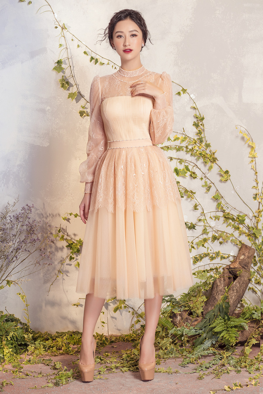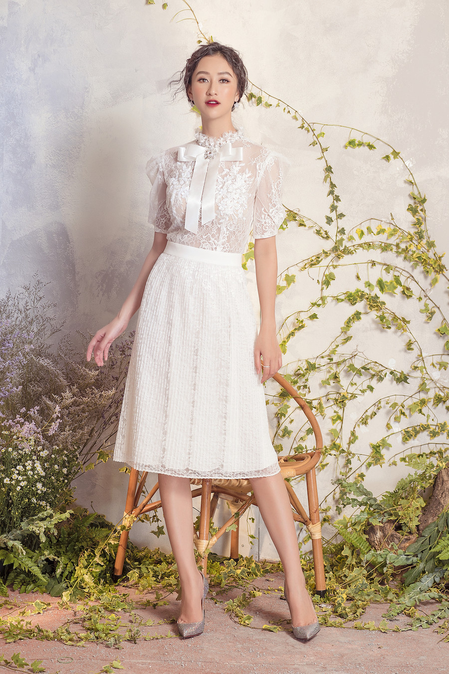 Bên cạnh họa tiết ren, điểm nhấn của những thiết kế lần này nằm ở phần cổ và tay áo.