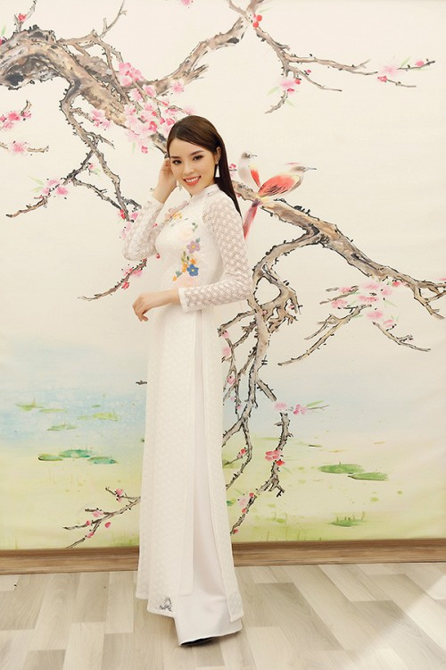 Trong khi đó, Hoa hậu Kỳ Duyên lại xuất hiện với tà áo dài trắng dịu dàng.