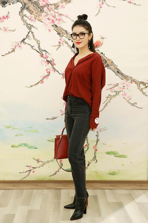Thay vì diện những bộ váy lộng lẫy, kiêu sa, Huyền My gây chú ý với trang phục đời thường cá tính và trẻ trung.