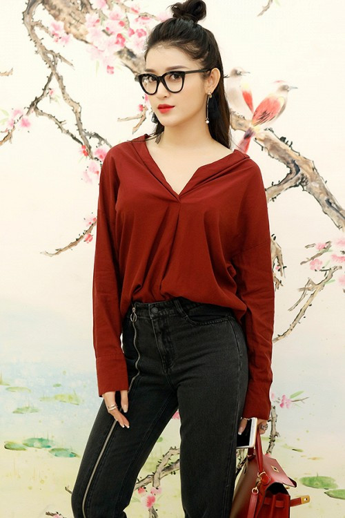Chân dài Phan Hoàng Thu khéo léo khoe vai trần gợi cảm.