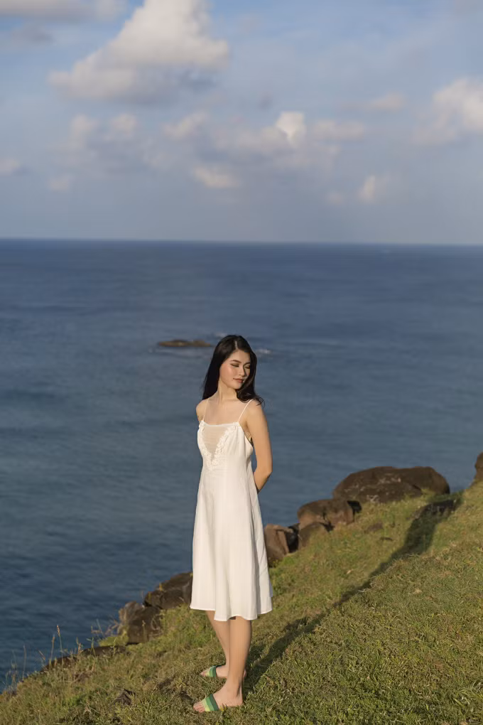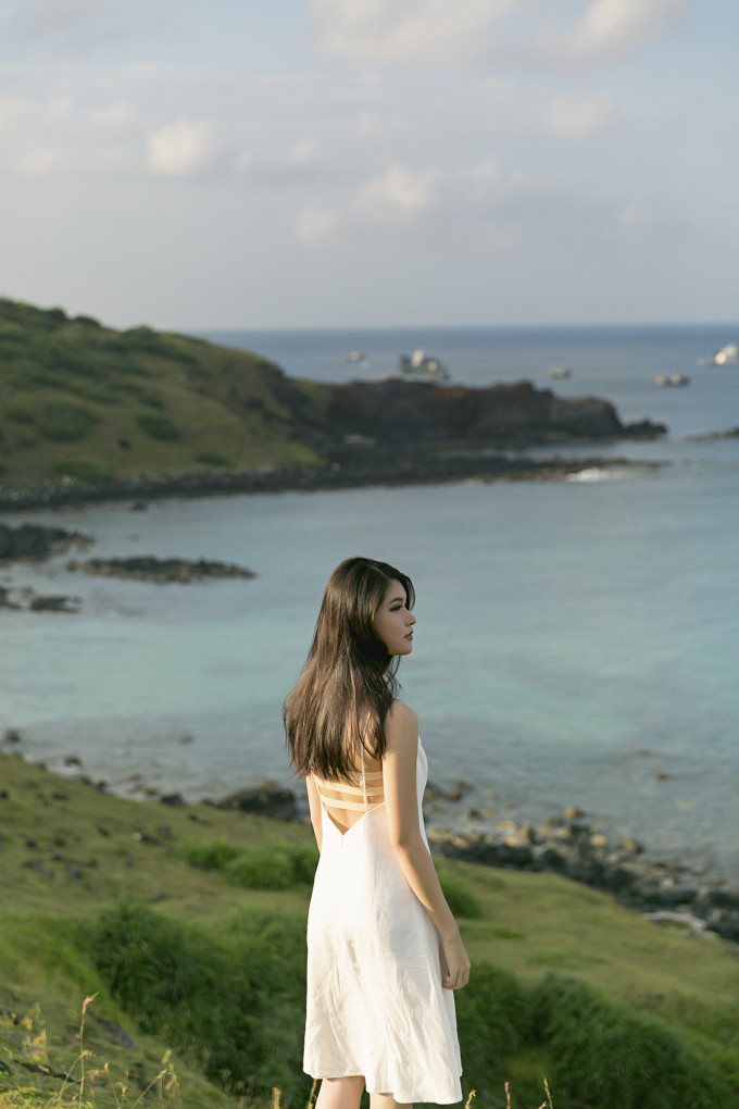 Tại đây, người đẹp 9X khoe vẻ đẹp mong manh, căng tràn sức sống trong những bộ cánh lấy sắc trắng làm chủ đạo. Giữa biển trời mênh mông của đảo Phú Quý hay ánh nắng hoàng hôn dần buông, Thuỳ Dung khoe nhan sắc mộc mạc, nhẹ nhàng mà đầy cuốn hút.