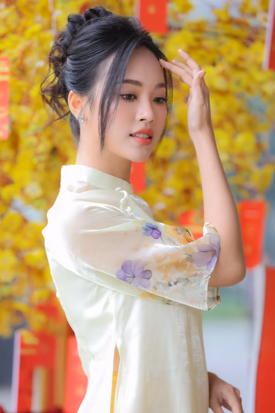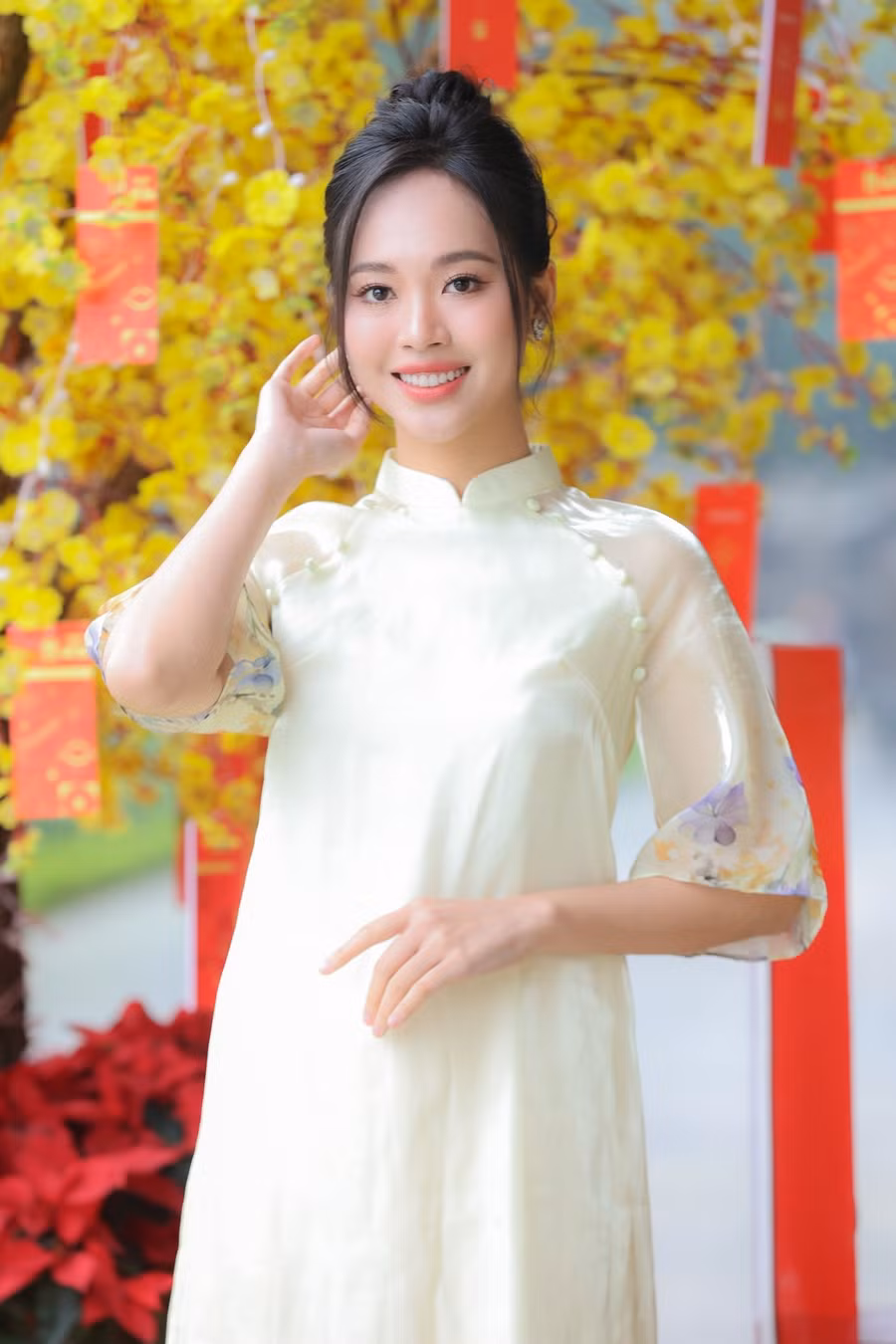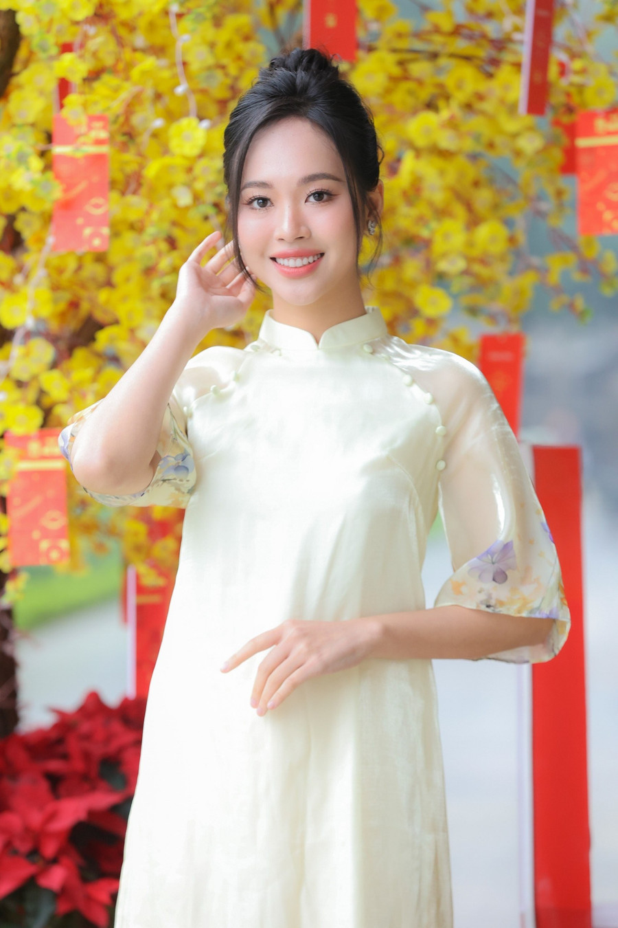 Á hậu Trịnh Thùy Linh đã có những chia sẻ với Tiền Phong về một năm 2023. Người đẹp xuất hiện nền nã, thanh lịch trong trang phục áo dài hoạ tiết hoa cỏ mùa xuân.